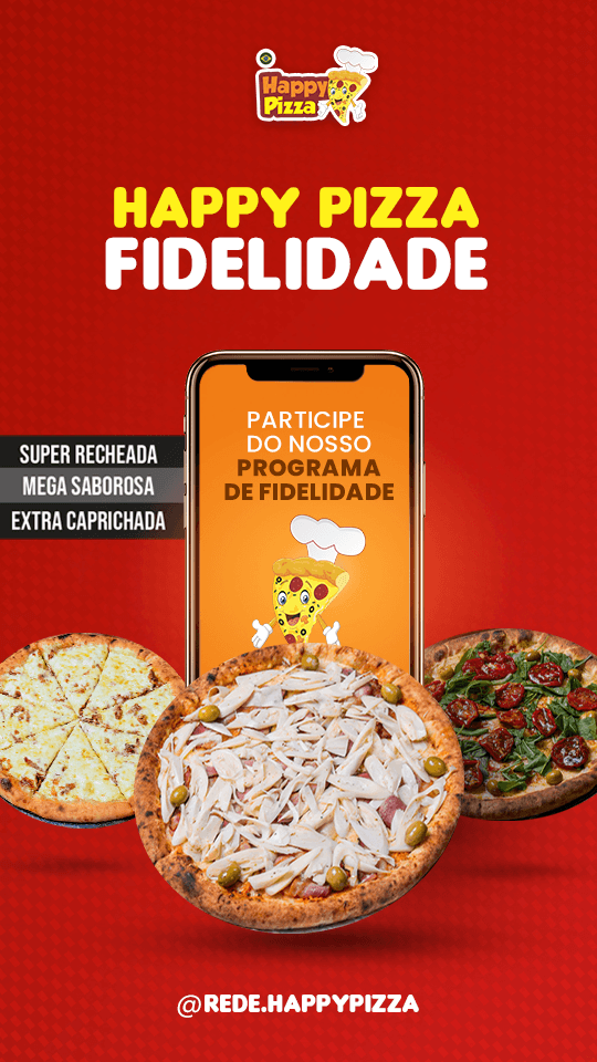 Participe gratuitamente do Happy Pizza Fidelidade! Faça seu cadastro abaixo e troque por prêmios em suas próximas compras.